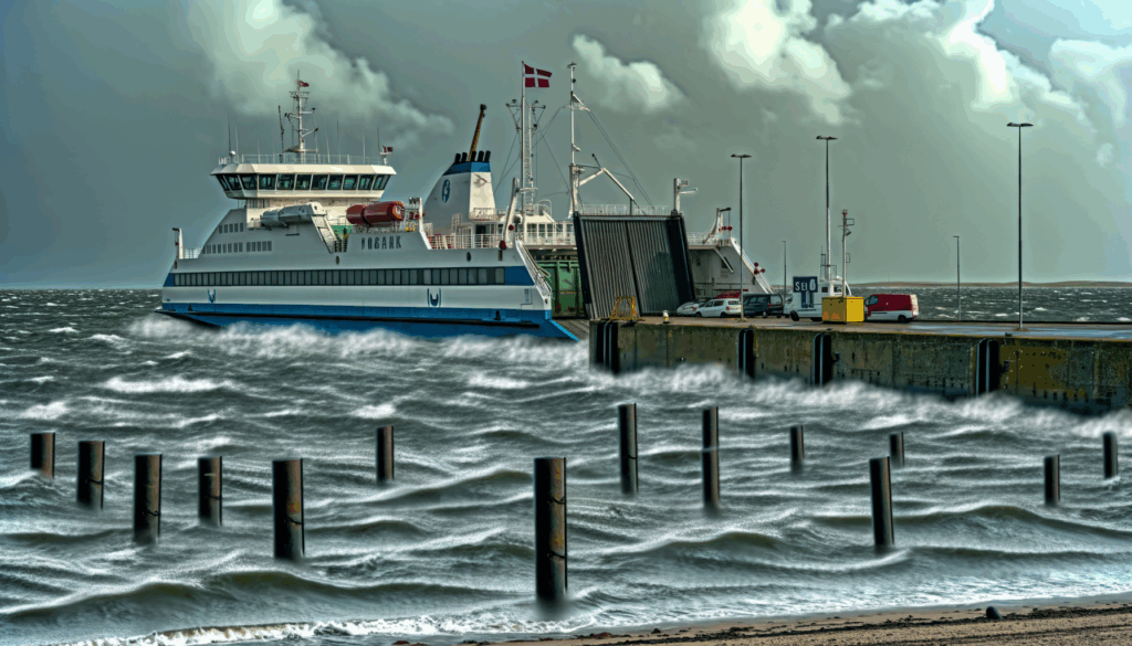 kraftig blæst sætter færgedrift i stå Den hårde vind, som har ramt Danmark de seneste dage, fortsætter med at skabe